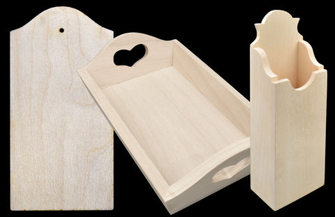 Addtional options are available for the small tray and pencil holder. The small wood tray is made of alder and measures 9 1/4" long by 5" wide and is 2" tall at the handles.